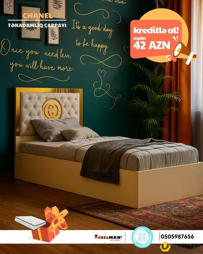 Yeni kolleksiya yeni təkadamlıq çarpayı modellərini KREDİTLƏ əldə edə bilərsiniz.