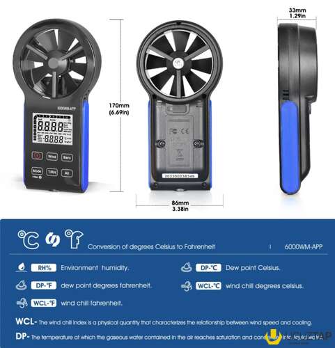 ✅️ LCD displeyli Smart APP əl anemometri, məlumatları saxlamaq asandır, açıq anemometr müxtəlif açıq hava fəaliyyətləri üçün uyğundur, məsələn: yelkənli, dronla uçuş, atəş, balıqçılıq, gəzinti və s.