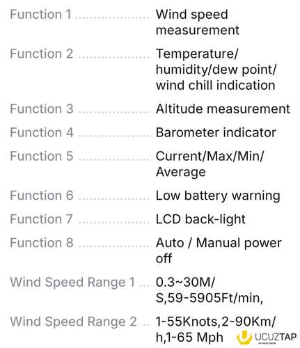✅️ Maks/Min/Reverse/Cari küləyin sürətinin ölçülməsi/dəyişdirilə bilər, istifadəsi və oxunması asandır.