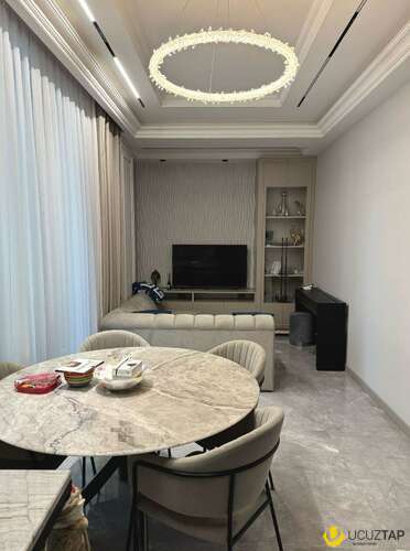 - Təsvir: Təmirdən sonra yaşayış olmayıb. Əşyalı satılır. Vitraj pəncərələr, mərkəzi istilik sistemi, 2 s/q, qarderob və 2 eyvanı var. Sigma liftləri, mərmər bloklar, geniş həyəti, yeraltı və yerüstü parkingi var. Şirkət haqqı 1% (alıcıdan).