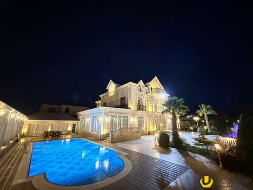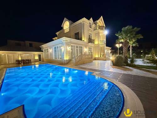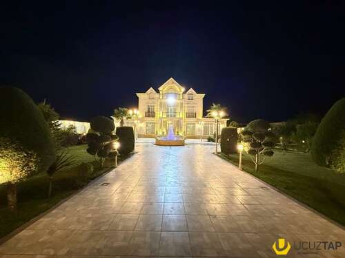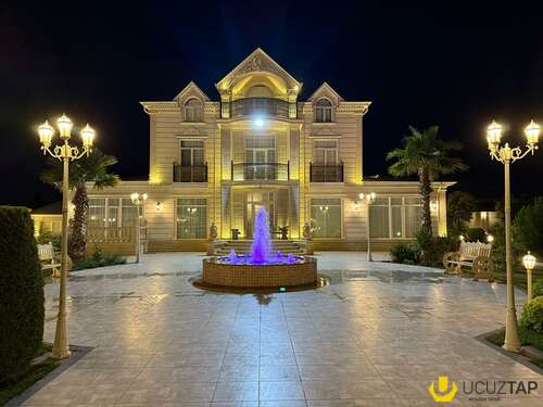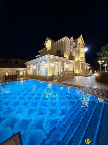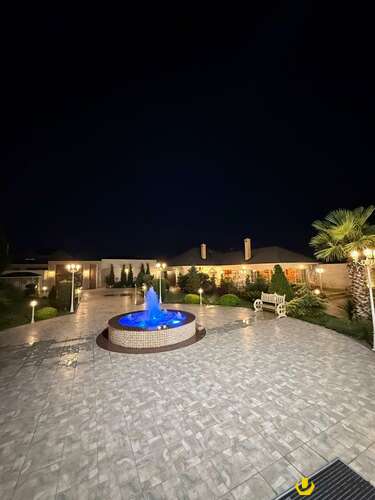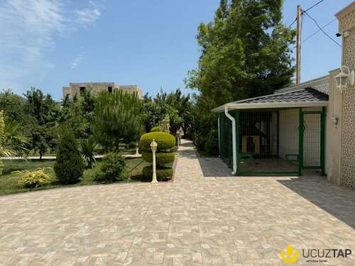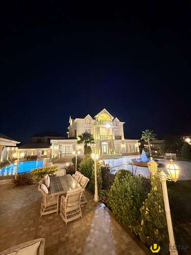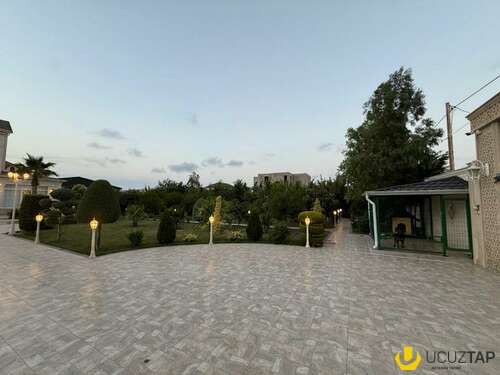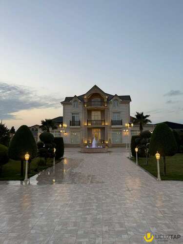- Təsviri: Tikinti və təmirində İtaliya, Almanya və Türkiyyə istehsalı olan çox yüksək keyfiyyətli materiallardan istifadə olunub. Yüksək keyfiyyətli mebellər və avadanlıqlarla birlikdə satılır. Qaz su işıq daimidir, 6 s/q, hovuz, besedka, terras, idman zalı, sauna, qış mətbəxti, təbii odunla kamin, manqal, 4 avtomobillik qaraj, 36 tonluq su çəni və s. Həyətində çoxlu sayda meyvə və bahalı dekorativ ağaclar, avtomatik suvarma sistemi, təhlükəsizlik kameraları var. İlin hər mövsümündə yaşamaq üçün hər cür yüksək şərait yaradılıb. Şirkət haqqı 1% (alıcıdan).