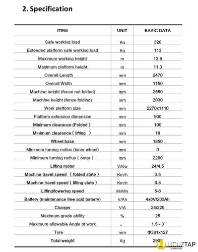 Maksimum iş hündürlüyü : 13.8 m