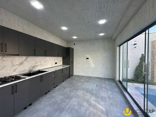 Həyətdə filtrli hovuz, yay və qış mətbəxi, cam balkon, landşaft dizaynlı abad həyət mövcuddur. Ev tam təchiz olunmuş mətbəx mebeli və bahalı hamam aksesuarları ilə təmin edilib.