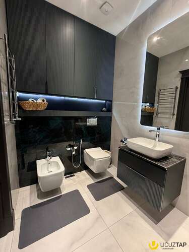 - Təsviri: Premium təmirli mənzildir. Yüksək zövqlə və bahalı materiallarla təmir edilib. Bəzi əşyalar götürüləcək. Qaz su daimidir, kombi sistemi, isti və soyuq pol quraşdırılıb, 2 s/q var. Şirkət haqqı 1% (alıcıdan).