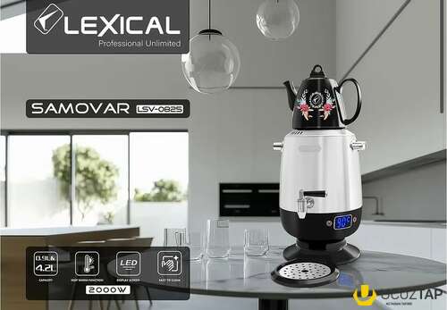 Somavar Lexical LSV-0825 . Cihaz çay və isti su hazırlamaq üçün nəzərdə tutulmuşdur, paslanmayan polad gövdəyə və keramika dəmliyə malikdir.