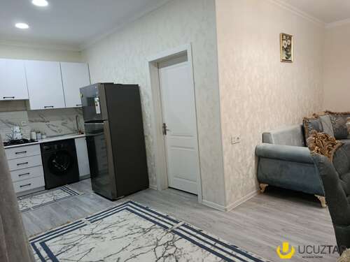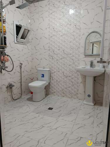 Evin ümumi sahəsi həyətlə birlikdə 87 m², torpaq sahəsi 1 sotdur. Planlaşdırma studiya mətbəx formatındadır. Ev tam əşyalı satılır və yaşayış üçün tam hazır vəziyyətdədir.