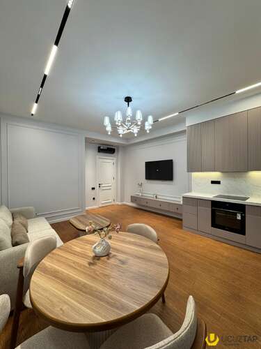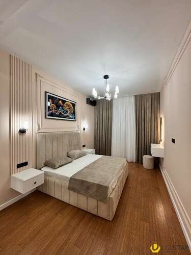 - Təsvir: Yeni təmirlidir, yaşayış olmayıb. Əşyalı satılır. 24 saat mühafizə olunan böyük bağlı həyəti, video müşahidə, səssiz sürətli Mistubishi liftləri, 3 mərtəbəli yeraltı qarajı, uşaq oyun və futbol meydançası və s. Şirkət haqqı 1% (alıcıdan).