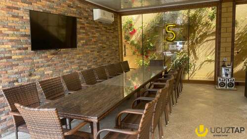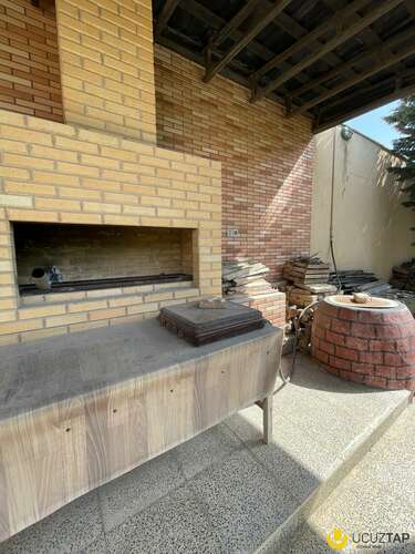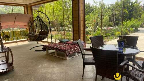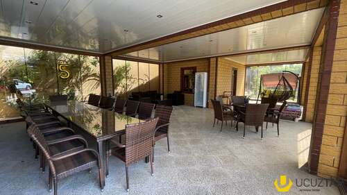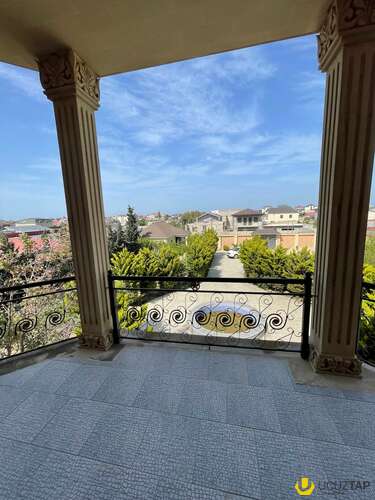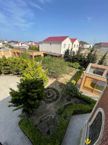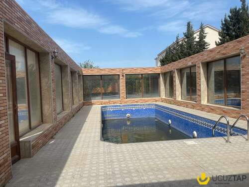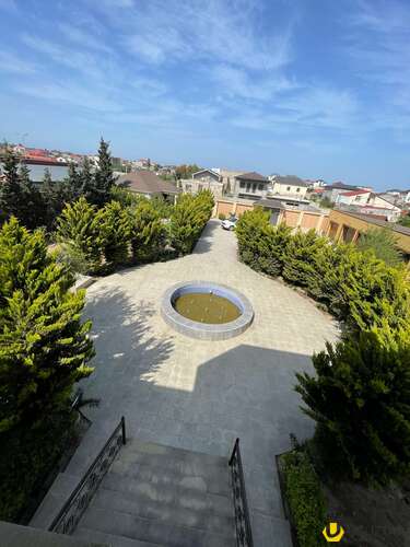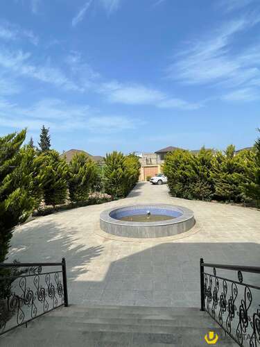 Həyətində geniş 2 paltar dəyişmə və hamamlı istilik sistemli filterli hovuz, manqalxanası, təndir, 8 nəfərlik söhbətgah (besedka), 50 nəfərə qədər qonaq üçün (açılıb bağlanan, istilik keçirməyən xüsusi şüşələrlə) yay-qış mətbəxi, qonaq, yataq, mətbəx, sanuzelli, mühafizəçi evi, qaraj, 16 kamera sistemi, kanalzasiya sistemi, pultla idarə olunan darvazası, dekorativ ağacları və gülləri, sanitar qovşağı, yaşıllıq ərazisi, sensorlu gecə işıqları var.