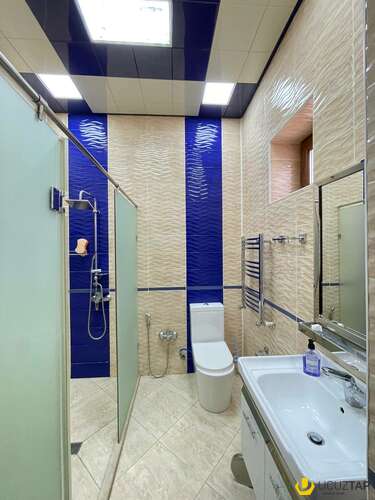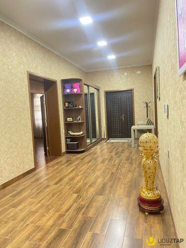 Ev yüksək zövq və keyfiyyətlə təmir olunub. Otaqlarda asılmış çilçıraqları, işıqlandırma sistemi, holl və mətbəxdə isti döşəməsi, tam hazır sanuzelləri var.