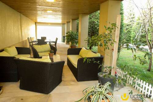 Həyətdə istirahət üçün hər şərait yaradılıb (tennis stolu, yelləncəkli divan, yumşaq oturma dəsti, həyətdə ayrıca şüşəli soyuducu və s. əşyalar).