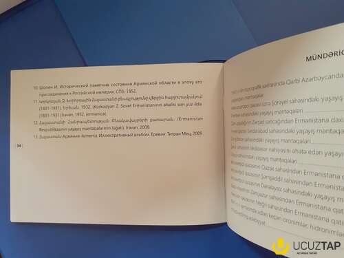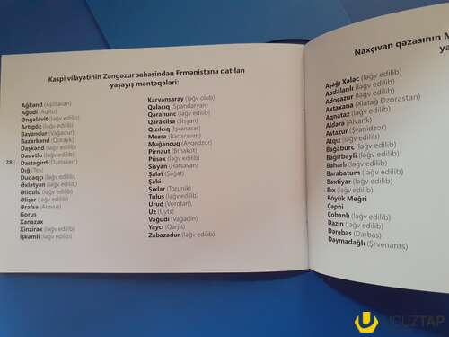 Qutunun içində xəritələrə əlavə olunmuş kitabça var. Kitabçada həmin dövrdə xəritələrə uyğun olaraq indiki Ermənistan ərazisində mövcud olmuş türk toponimlərin dəyişdirilməsi siyahısı göstərilib. Kitabça 35 səhifədən ibarətdir. Azərbaycan dilindədir.