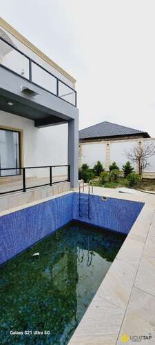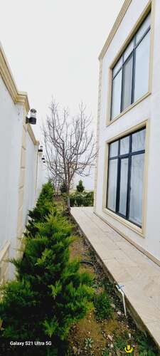 Həyətində müxtəlif növ bar verən və dekorativ ağaclar,ı hovuzu, manqalnisi, pultla idarə olunan qapısı var.