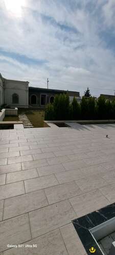 Həyəti tamet daşlarla döşənilib.