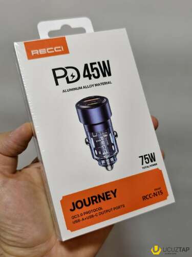 Recci Car Charger Journey səmərəlilik və rahatlıq üçün nəzərdə tutulmuşdur. Onun ikili USB-C və USB-A portları eyni anda iki cihazı doldurmağa imkan verir, yığcam dizaynı isə çox yer tutmadan avtomobilinizin elektrik rozetkasına asanlıqla yerləşməsini təmin edir.
