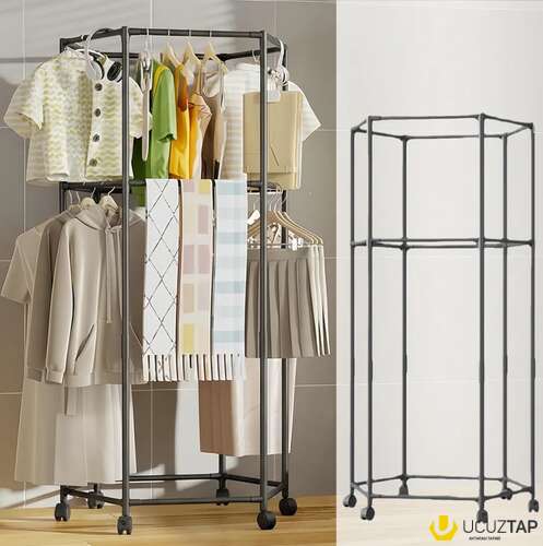 Asılqan 360° Təkərli bu paltar rəfi. Ölçü:172*70*36sm