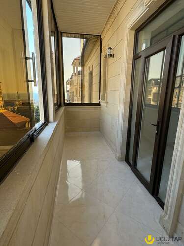 o Mərmər pilləkənlər, zövqlü otaq qapıları, 75mm alman istehsalı olan profillə keyfiyyətli plastik pəncərələr və cam balkonlar yüksək səviyyədə quraşdırılmışdır