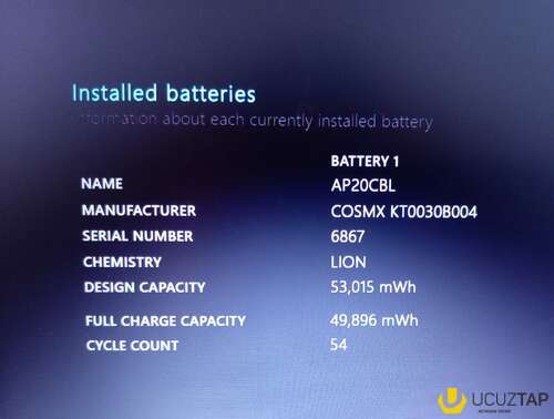 Batareya: Yeni kimidir, cəmi 54 dəfə doldurulub (Battery cycle: 54 – Sübutu fotolarda var).