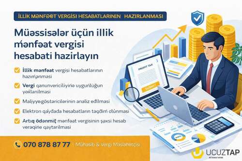 ? Müəssisələr üçün İllik Mənfəət Vergisi Hesabatlarının Hazırlanaraq təqdim olunmasi üzrə peşəkar xidmət təklif edirəm: