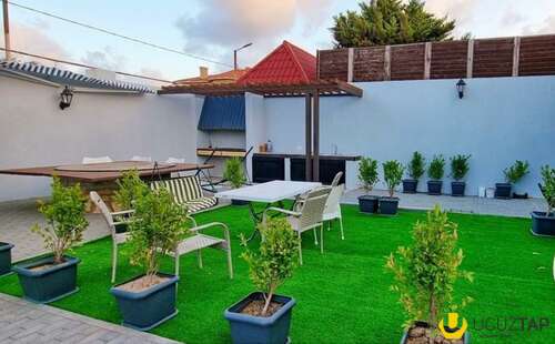 - Həyətdə dekorativ ağaclar və güllər əkilib, besedkası, hovuzu var.